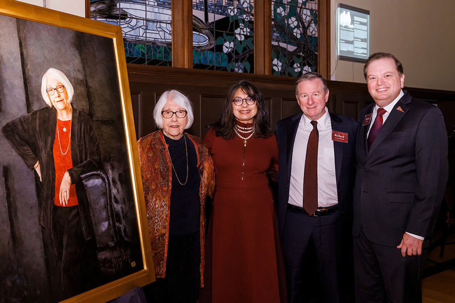 Anne Spencer Daves is joined by FSU President Richard McCullough, FSU First Lady Dr. Jai Vartikar and Anne's College Dean Damon Andrew. (Colin Hackley)