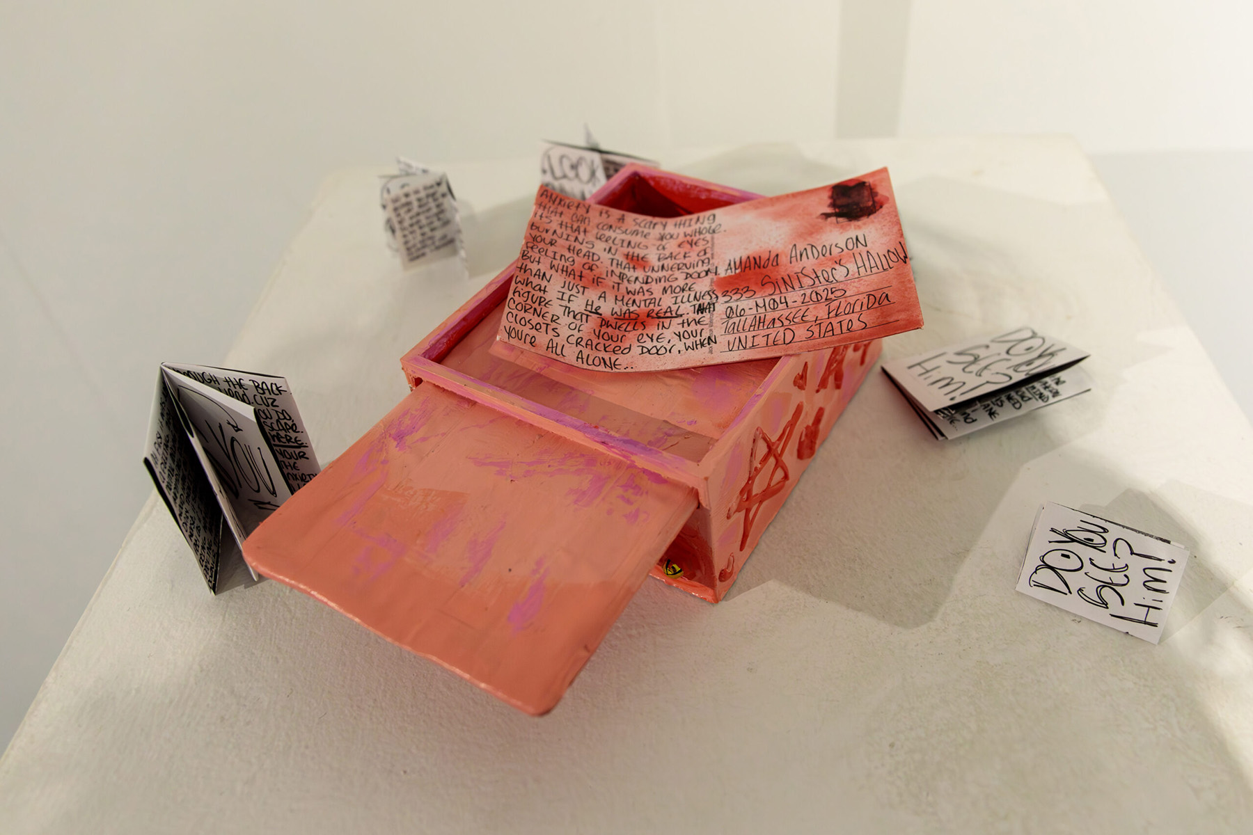 The exhibition featured the work of Clay Barczak, Emmie Bryson, Lily Crocamo, Rachel Holsonback, Sophia Jusino, Angela McCall, Nicolina Morr, Rachel Ostrander, Anna Parsons, Kaylee Sibelle, Gabrielle Shakir, Anna Speer and Alexandra Vergopia.