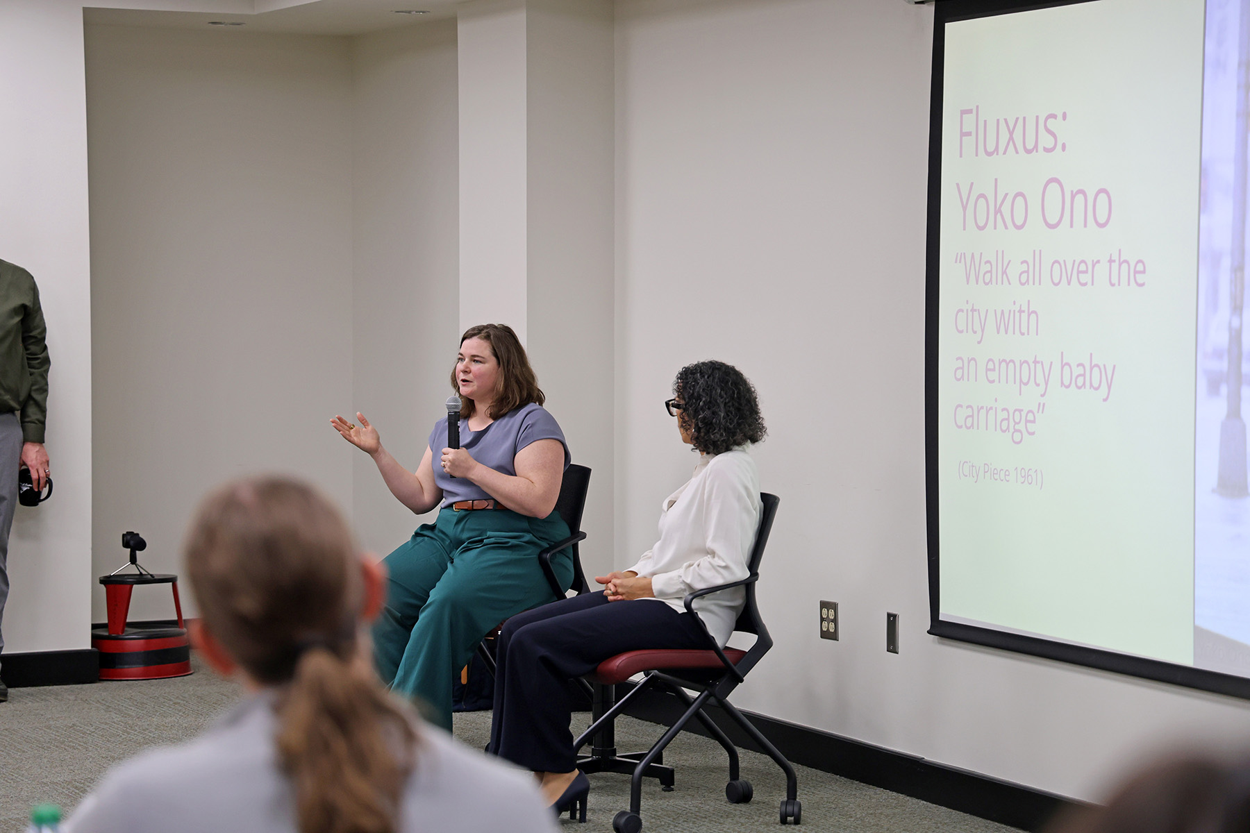 The conversation featured Aimée Boutin, a professor of French in the College of Arts and Sciences and Meaghan McSorley, an assistant professor of Urban and Regional Planning in the College of Social Sciences and Public Policy.