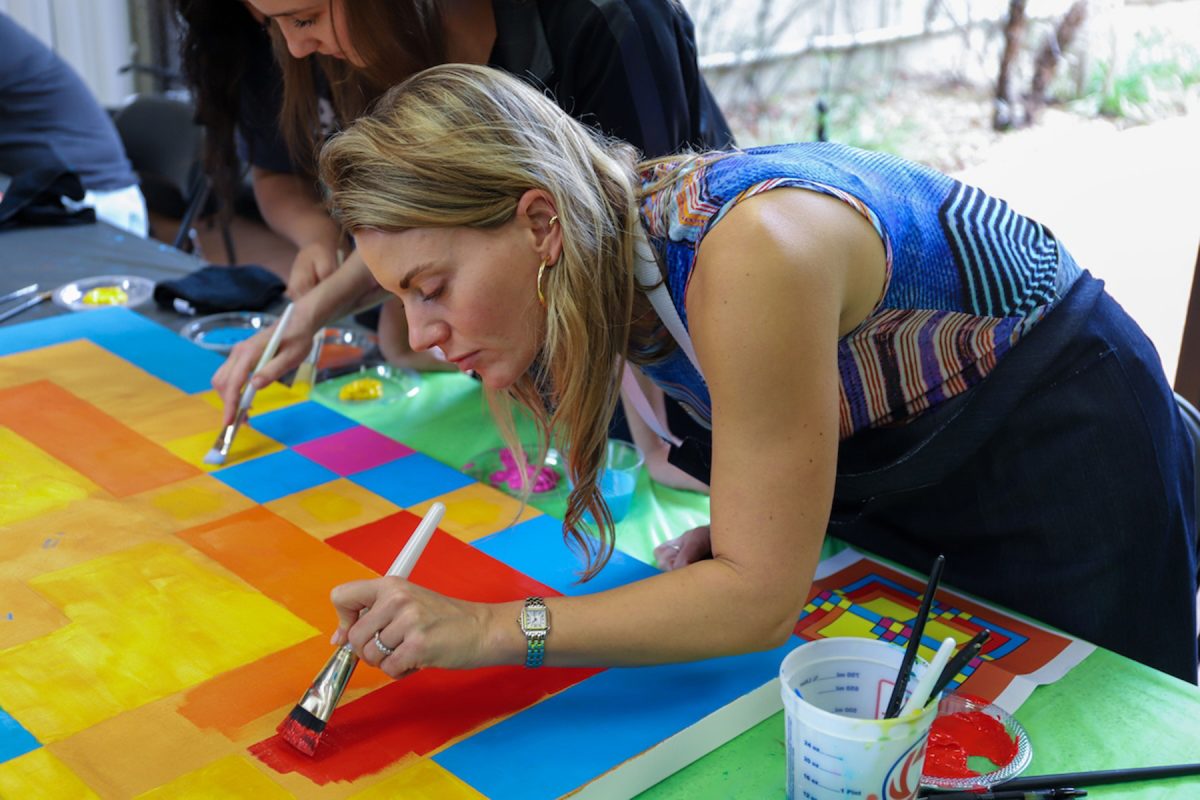 Students, faculty, staff and community members came together on Feb. 27 to complete a colorful patchwork-inspired painting, which will be displayed at NAIS, in the Greene-Lewis House at 525 W. College Ave., following its completion.