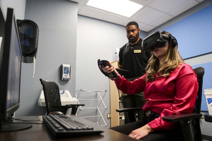 The therapy incorporates virtual reality into the team’s already promising work with transcranial magnetic stimulation (TMS) treatments. TMS uses magnetic fields to stimulate nerve cells in specific areas of the brain. In the new clinical trial, volunteers with PTSD will first undergo two weeks of virtual reality mindfulness training twice a day.