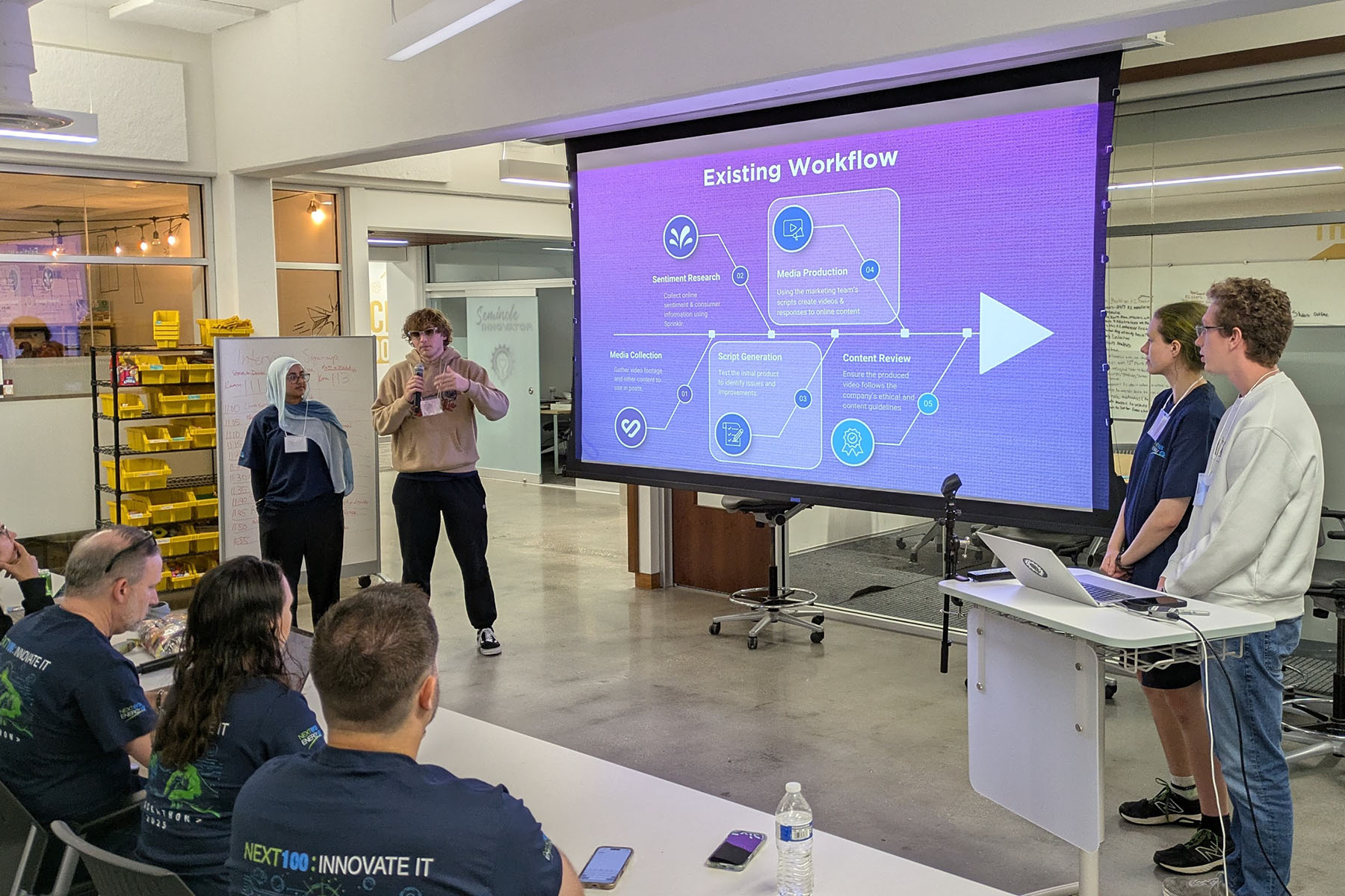 Last weekend, the Innovation Hub partnered with NextEra Energy — the parent company of Florida Power & Light — to host the Next100 Hackathon. Students were challenged to develop innovative solutions to protect the power grid from cyberattacks and natural disasters.