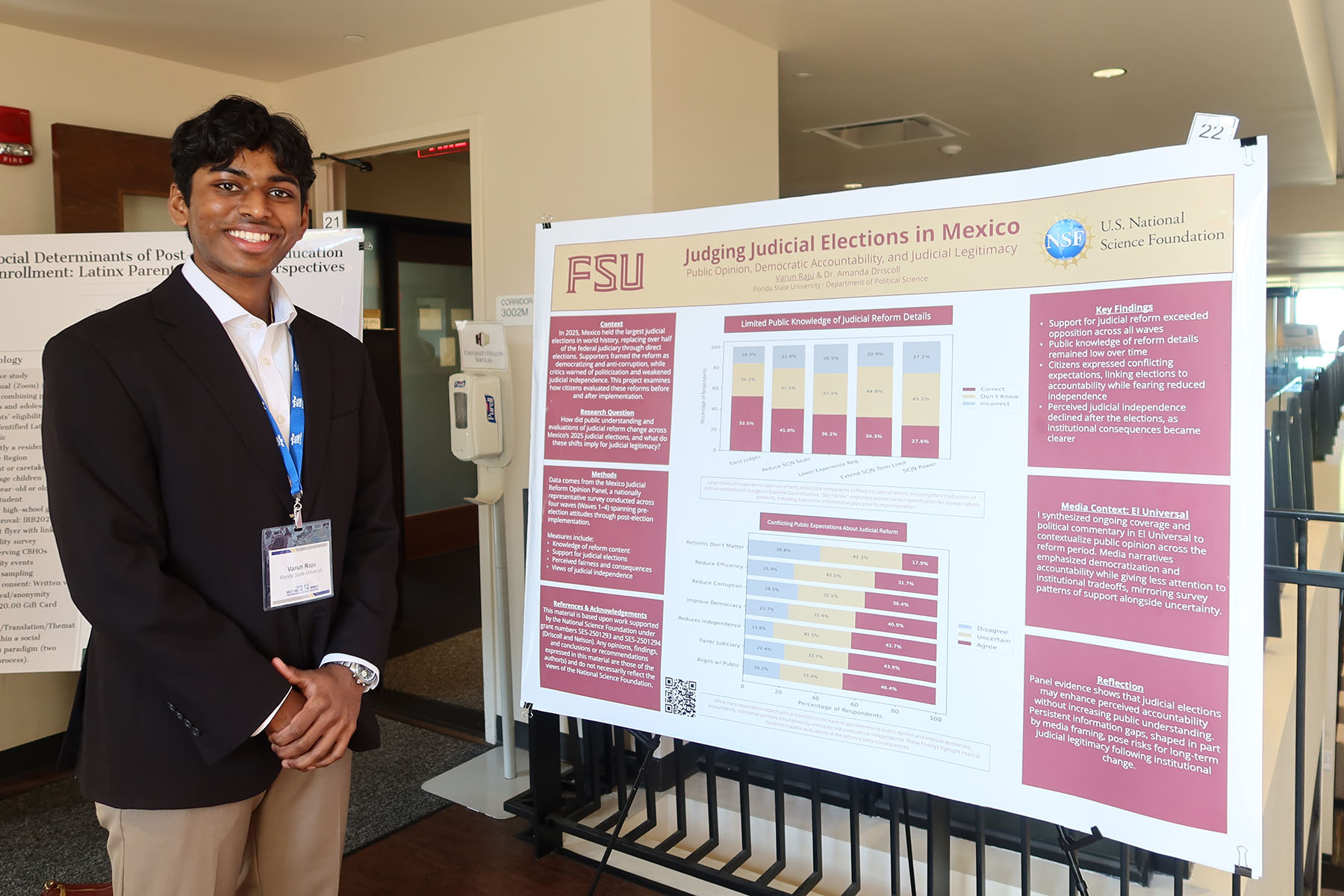FSU political science and economics student Varun Raju presented his research assessing public opinion and perception about recent large-scale judicial reforms in Mexico.