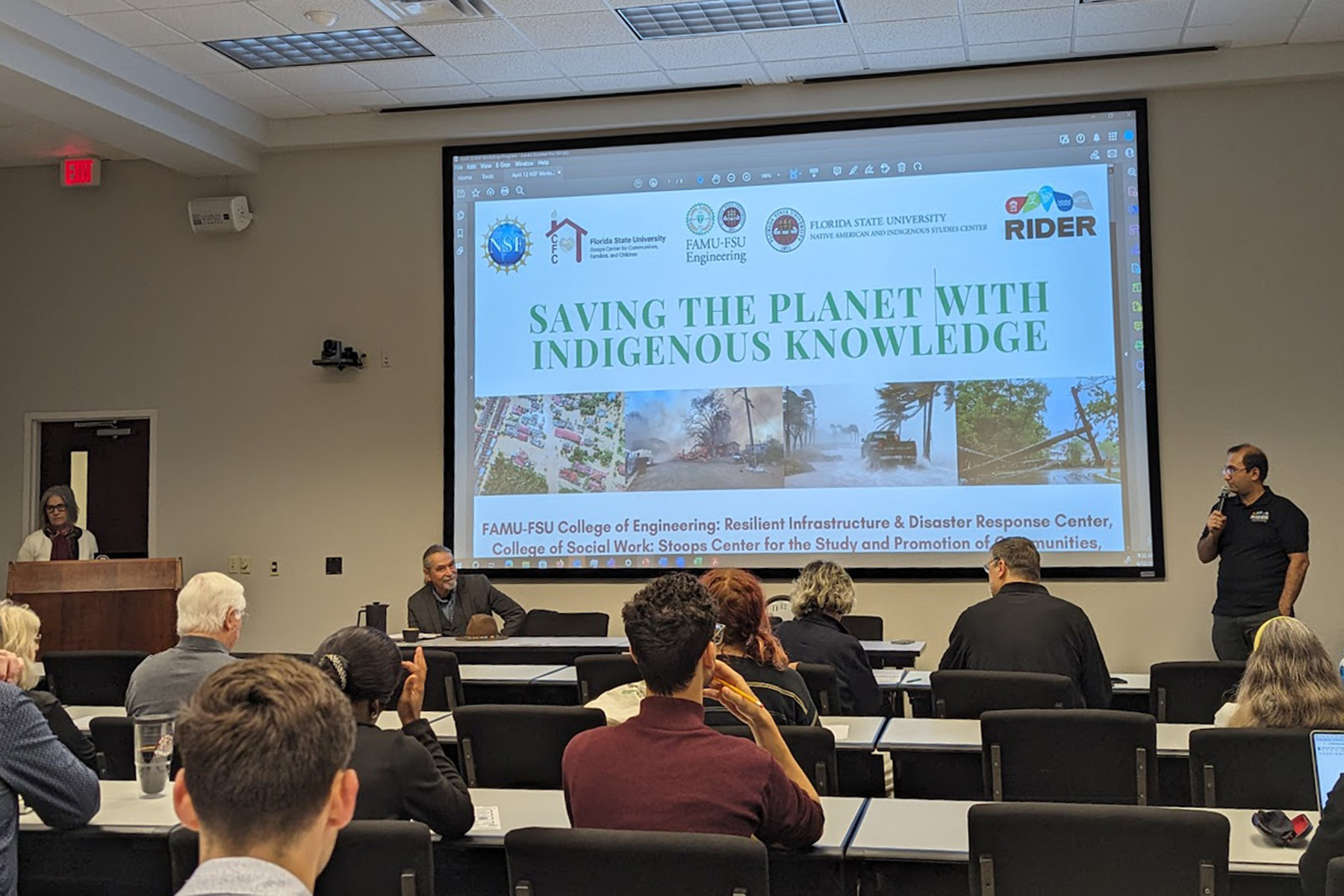 “Saving the Planet with Indigenous Knowledge” brought together experts from across FSU, including the FAMU-FSU College of Engineering and its RIDER Center, the College of Social Work, the Stoops Center for Communities, Families, and Children and the Native American and Indigenous Studies Center.