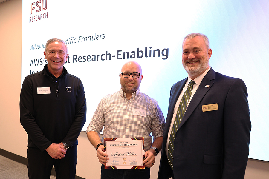 On Tuesday, he shared his experiences at the FSU-AWS Researcher Showcase and Awards, a celebration of research excellence and an opportunity for the FSU community to learn more about the high-powered research tools available through the partnership.