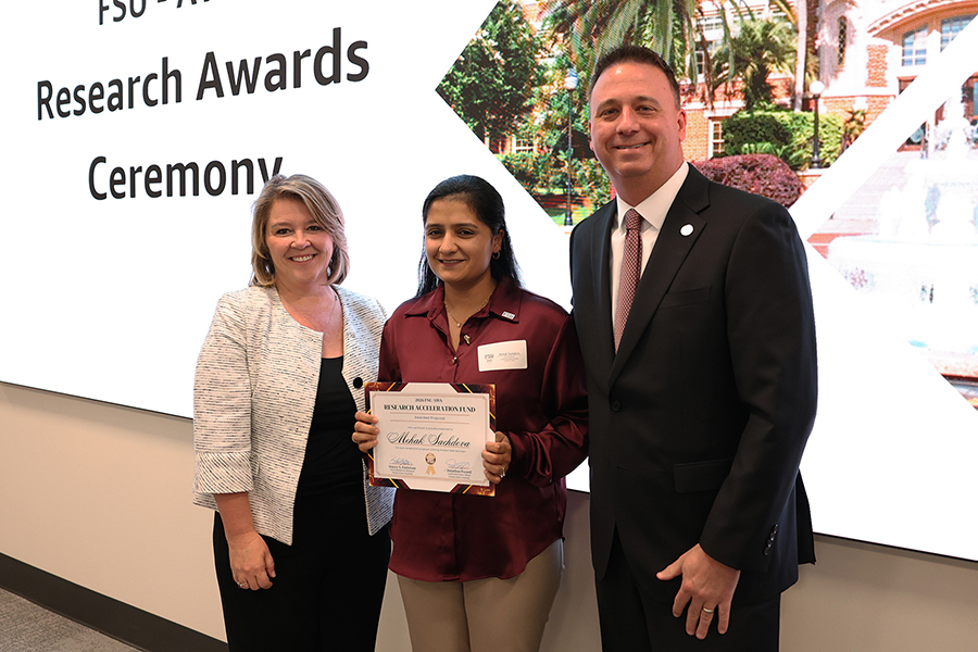 The FSU Office of Research and FSU Information Technology Services recognized 11 researchers from across campus as 2026 FSU/AWS Research Acceleration Fund Awardees for their exceptional creativity, impact and technical excellence in leveraging AWS cloud computing to advance scientific discovery. Winners came from departments across campus: social work; computer science; educational psychology and learning systems; geography; urban and regional planning; scientific computing; health, nutrition and food science; civil and environmental engineering; and communication science and disorders. Each received up to $20,000 in AWS credits.